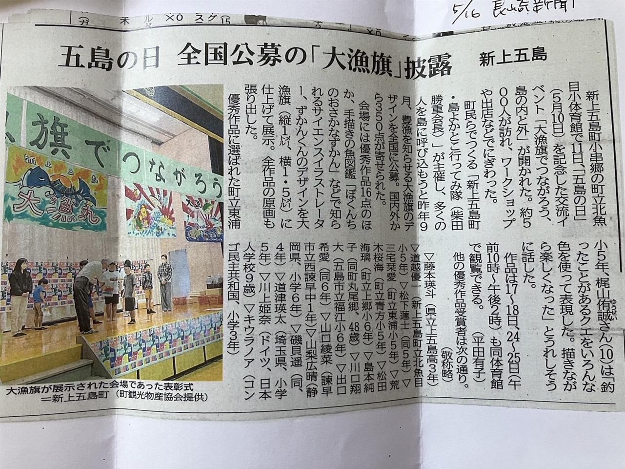 第2回大漁旗デザインコンクールの情報です。新聞にも掲載された。