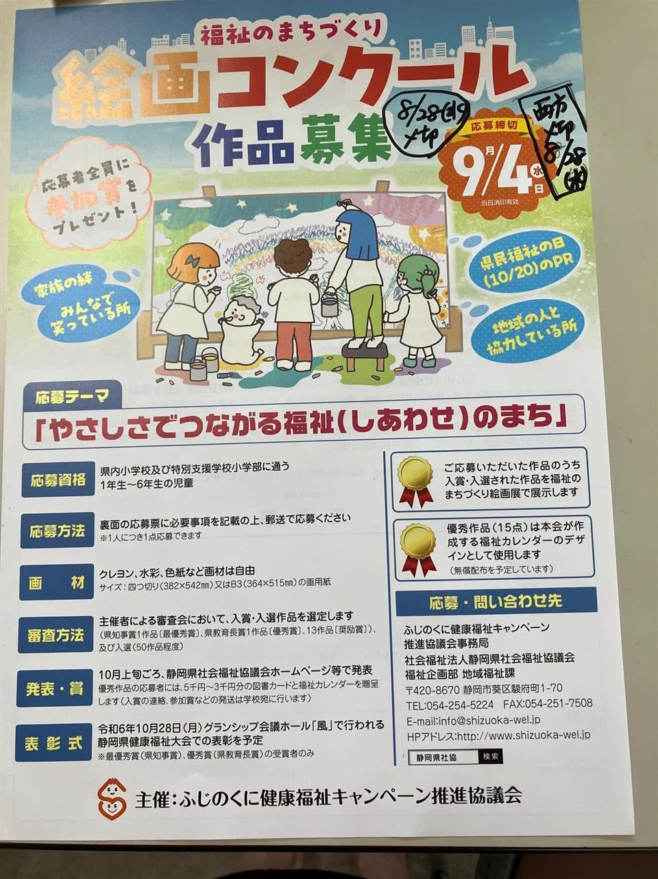 ①応募資格、幼児、、小学生、中学生対象。②四つ切り。大きいです。5回かかります。③ 締め切りは 6/19【水曜日】