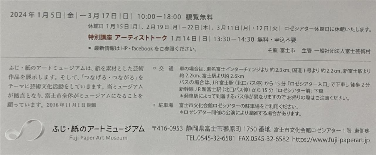 富士のロゼシアータの半澤友美展の 特別講座 アーティストトークに参加しました。半澤友美さんの独自技法の説明とアメリカ修行時代のお話し興味深かった。富士ロゼシアータの1階で3/17まで無料です。