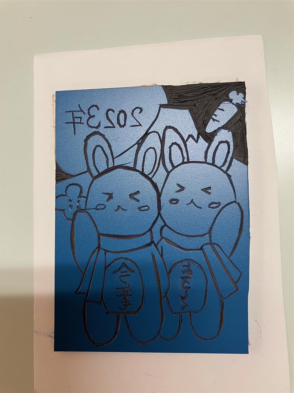 来年はうさぎ年。下絵出来たら描いて来てください。細かいのは、彫るのに大変です。2023年入れます。