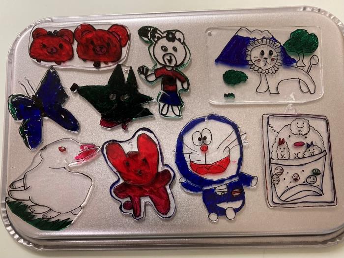 3月、4月はプラバンを制作しています。みんな好きな絵を描いて楽しそうに作っていますよ!